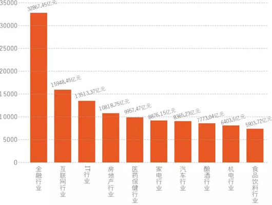 金融行业53个、医药保健52个、IT行业36个、食品饮料30个、服饰行业28个、建材家居27个、机电行业25个、互联网行业21个、房地产行业19个、家电行业19个、酿酒行业18个、零售行业17个、汽车行业17个、综合行业15个、农资饲料行业12个、建筑装饰行业9个、能源行业9个、钢铁行业8个、有色金属行业7个、纺织行业7个、环保行业7个、航空运输行业6个、化工行业5个、酒店旅游行业5个、娱乐行业4个、快递及物流行业4个、公用事业行业3个、生活用纸行业3个、农牧行业3个、石化行业3个、通信服务行业3个、新材料行业3个、照明电器行业3个、玻璃行业2个、教育行业2个、日化行业2个、文具行业2个、造纸行业2个、餐饮行业1个、电动车行业1个、港口行业1个、乐器行业1个、日用陶瓷行业1个、体育器材行业1个、园林工程行业1个、造船行业1个、咨询服务行业1个。